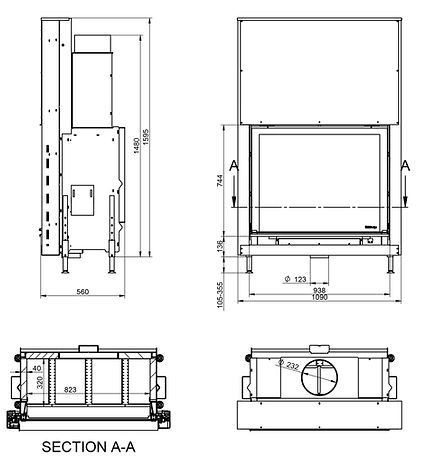 Модель KFC LINEA V 1190 вирізняється широкими дверцятами з підйомним механізмом. Камера згоряння виконана з термостійких вогнетривких панелей, які не лише витримують екстремальні температури, а й накопичують тепло. Завдяки цьому приміщення залишається теплим ще кілька годин після завершення горіння дров.