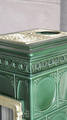 Керамічний корпус не лише підкреслює естетику виробу, а й акумулює тепло, поступово віддаючи його в приміщення навіть після завершення топлення. Це дозволяє досягти комфортного і рівномірного обігріву.